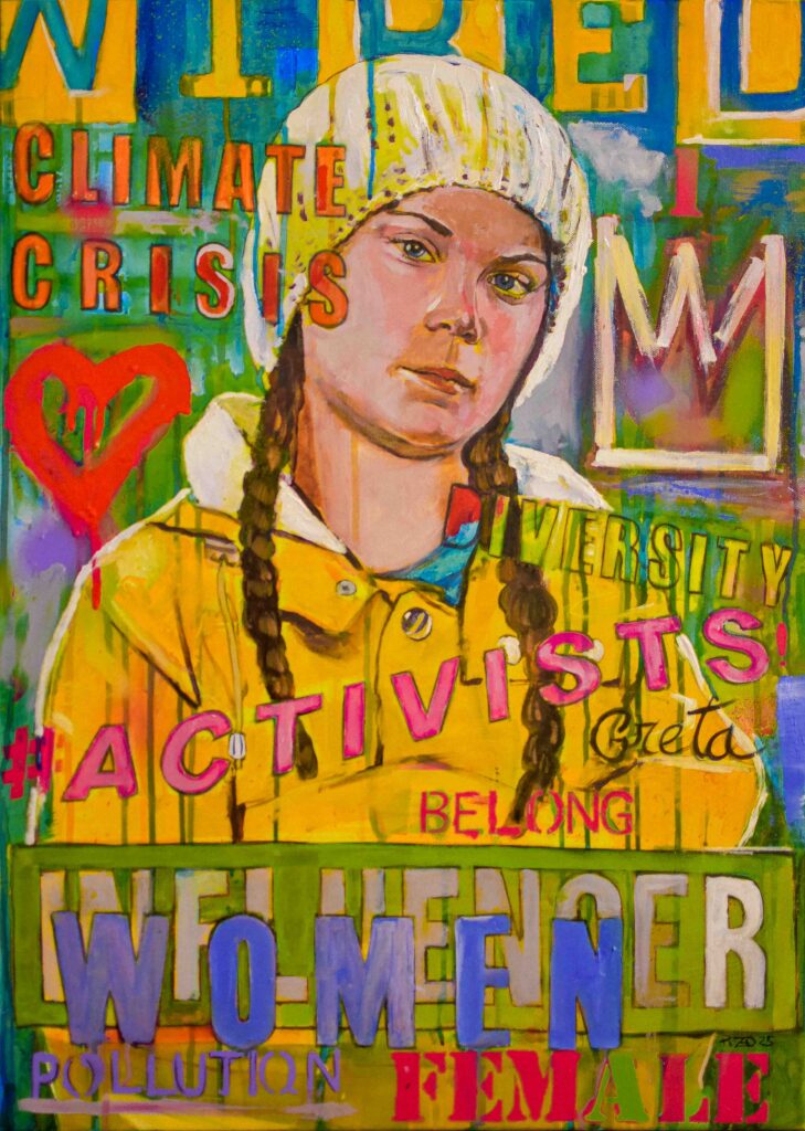 Portrait Greta Thunberg Oil on canvas. 50×70 cm. Price upon inquiry.
